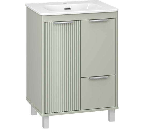 Тумба напольная Brevita RISACCA pistachio - 60, 2 двери, 1 ящик, матовая эмаль + раковина УТ000026418