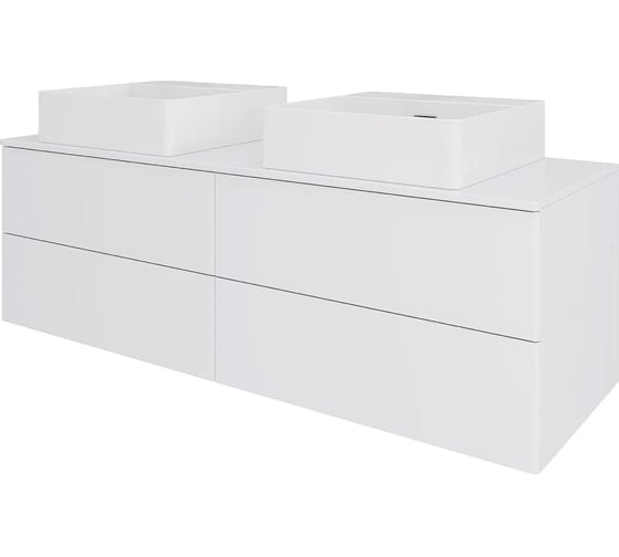 Подвесная тумба Orange с двумя раковинами и столешницей МДФ, с четырьмя выдвижными ящиками. Предназначена для использования в ванных комнатах с повышенной влажностью. Ящики открываются нажатием на них (механизм Push-to-Open). Высокое качество сборки, материалов и фурнитуры. Столешница, корпус и фасад: МДФ, плёнка ПВХ белая глянцевая. Раковина накладная - фарфор. Отверстия в столешнице под раковину и смеситель монтируются самостоятельно. Донный клапан приобретается отдельно.