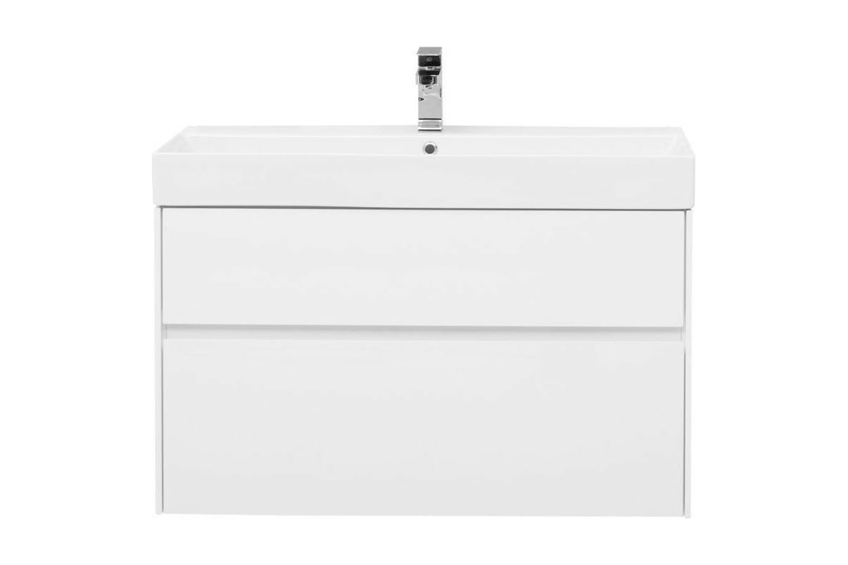 Корпус тумбы выполнен из ламинированного влагостойкого ДСП, а фасады - из МДФ, покрытого белой краской в несколько слоев.