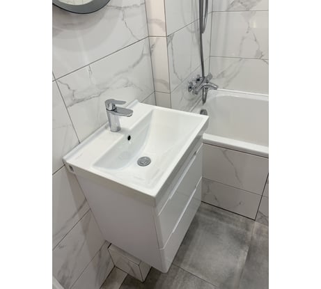 Тумба подвесная адель 50 с раковиной фест 50 (комплект) для ванной комнаты Sanstar белая 209.1-1.4.1.КФЕС