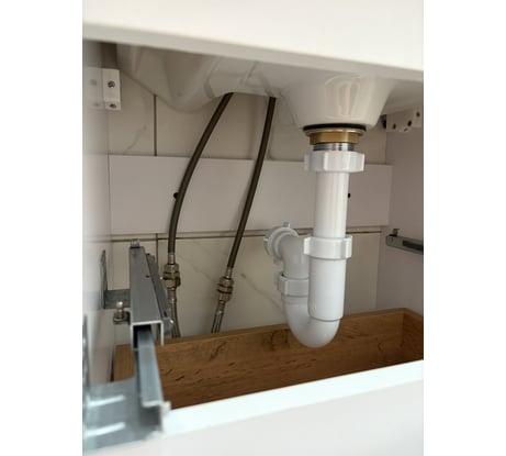 Собран хорошо, раковина больше тумбы, вода недолжна попадать на стенки, мойка не крепится, лежит на тумбе.