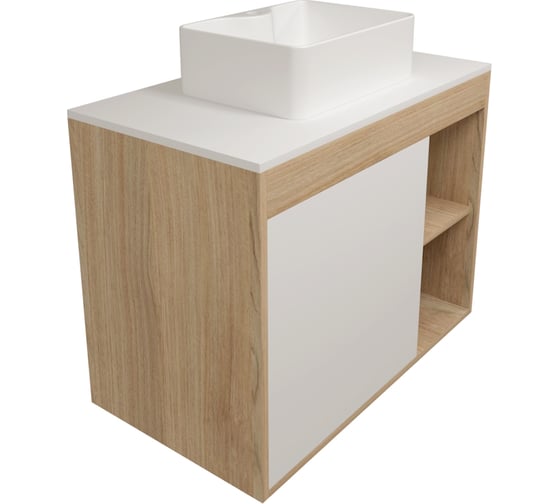 Тумба подвесная с раковиной для ванной Teymi Nura, 80 см, корпус дуб, фасад белый, раковина Helmi Mini 41 F15121 ЦБ-00285319