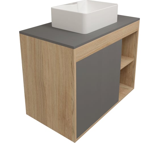 Тумба подвесная с раковиной для ванной Teymi Nura, 80 см, корпус дуб, фасад графит, раковина Helmi Mini 41 F15122 ЦБ-00285320