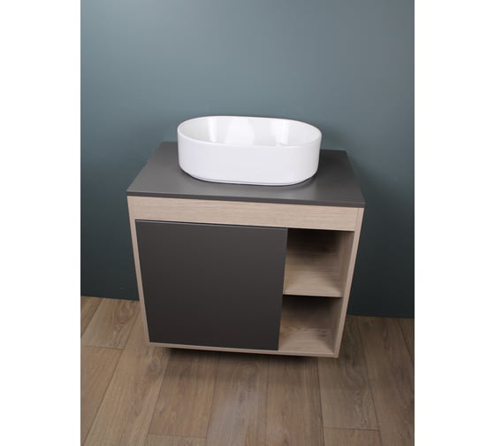 Тумба подвесная с раковиной для ванной Teymi Nura, 80 см, корпус дуб, фасад графит, раковина Iva 46 F13232 ЦБ-00285318