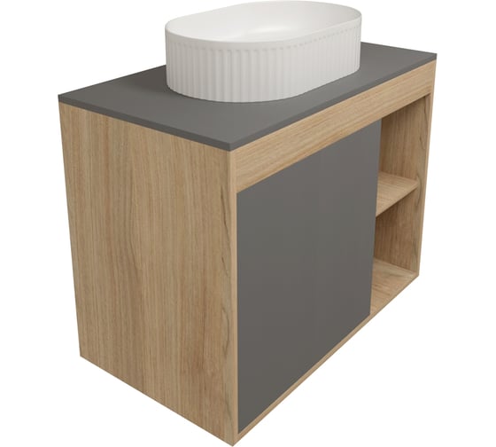 Тумба подвесная с раковиной для ванной Teymi Nura, 80 см, корпус дуб, фасад графит, раковина Martta 50 F15152 ЦБ-00285322