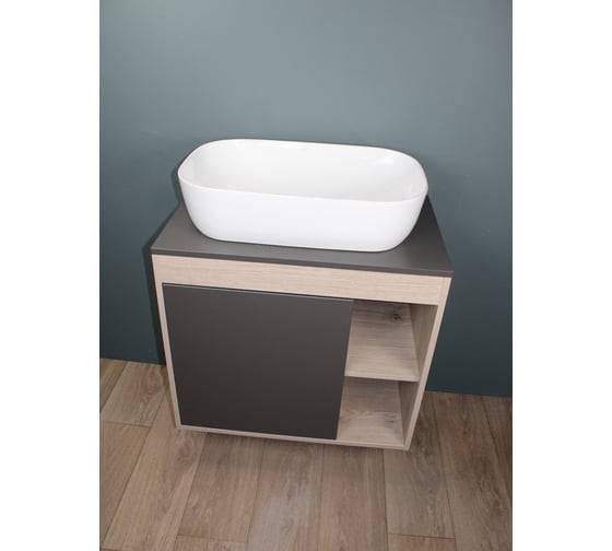 Тумба подвесная с раковиной для ванной Teymi Nura, 80 см, корпус дуб, фасад графит, раковина Solli 60 F13192 ЦБ-00285314
