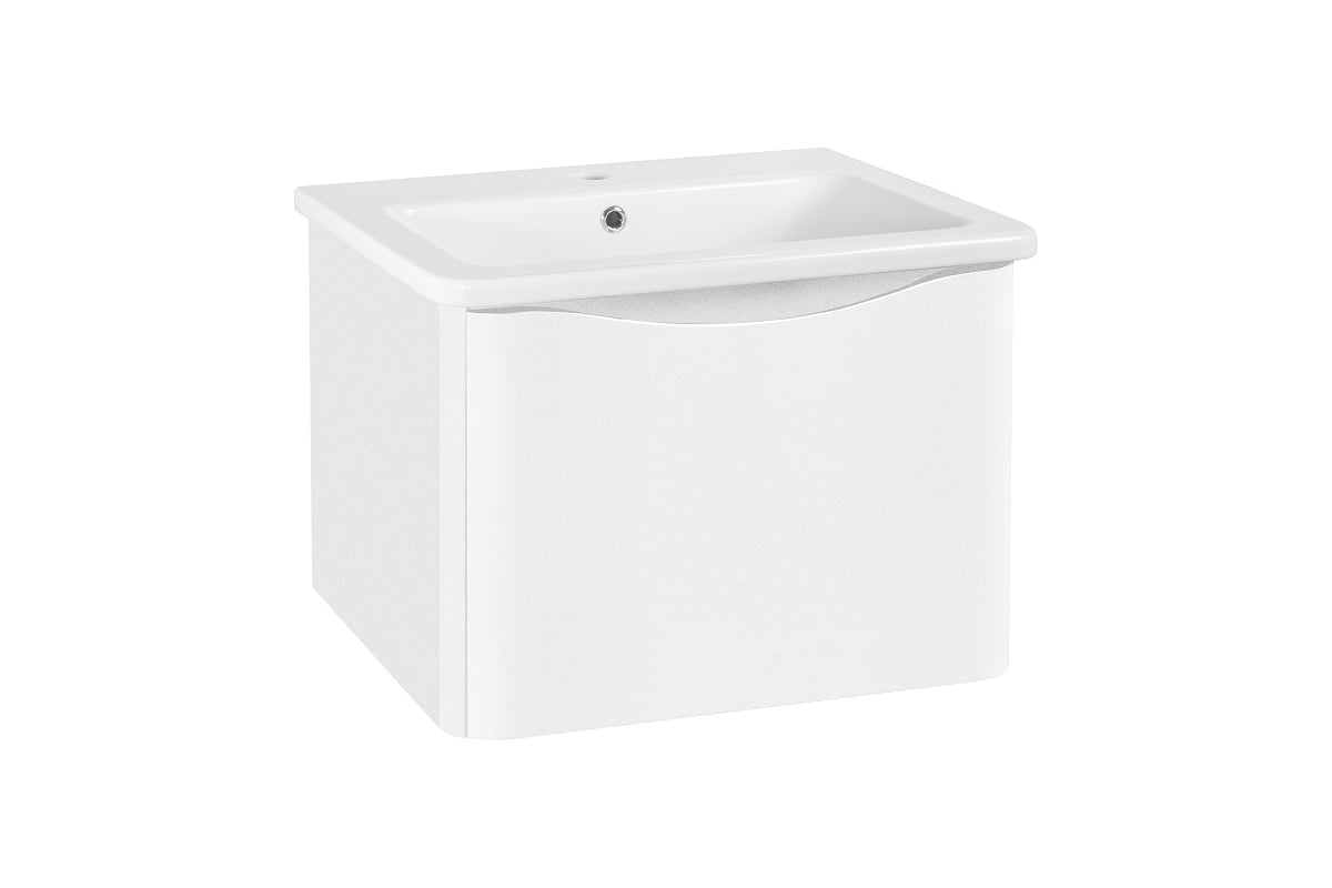 Тумба под раковину в ванную RUNO ТОСКАНА (подвесная) - выполнена в ультрасовременном дизайне в классическом белом цвете. Тумба под раковину отличается изысканным дизайном, скруглённые углы тумбы, древесная текстура фасада, врезная ручка – придают мебели необычный и незабываемый внешний вид.