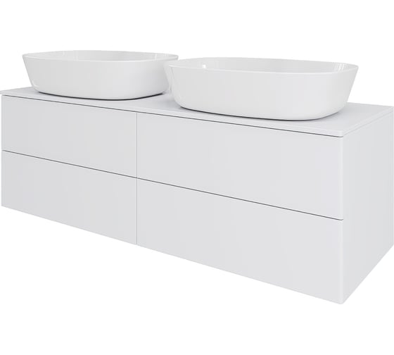 Подвесная тумба Orange с двумя раковинами и столешницей МДФ, с четырьмя выдвижными ящиками. Предназначена для использования в ванных комнатах с повышенной влажностью. Ящики открываются нажатием на них (механизм Push-to-Open). Высокое качество сборки, материалов и фурнитуры. Столешница, корпус и фасад: МДФ, плёнка ПВХ белая глянцевая. Раковина накладная - фарфор. Отверстия в столешнице под раковину и смеситель монтируются самостоятельно. Донный клапан приобретается отдельно.
