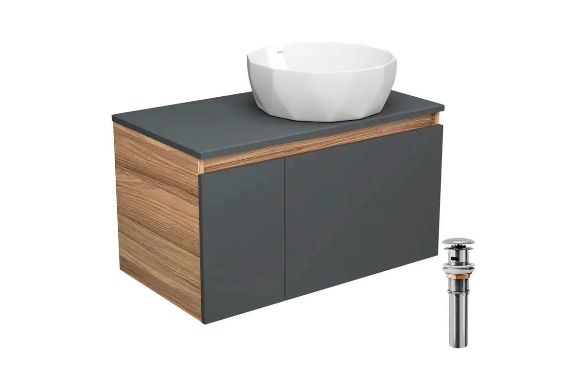Тумба с раковиной и выпуском Bauedge (тумба Bau Dream 80, графит + раковина накладная на столешницу BAU Diamond D40, выпуск клик-клак, хром) BD2299