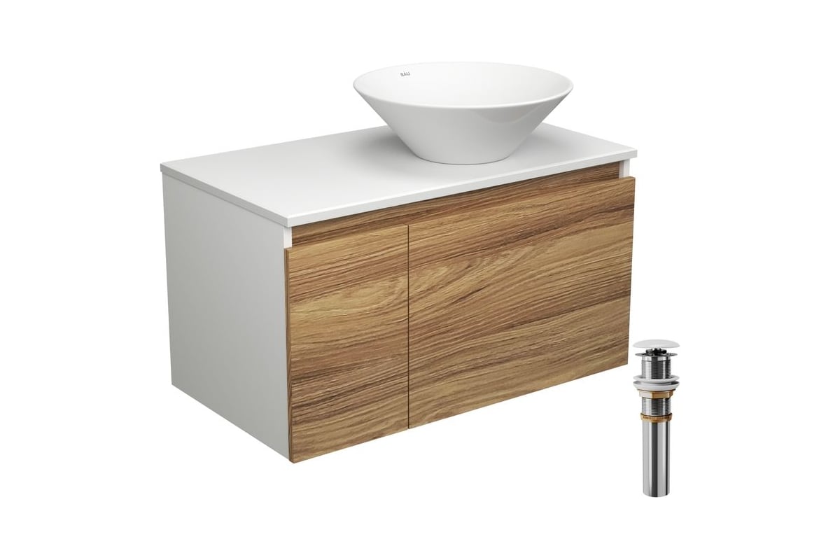 Тумба с раковиной и выпуском Bauedge (тумба подвесная Bau Dream 80 + раковина BAU Dream D43, белая, выпуск клик-клак, белый) BD1782