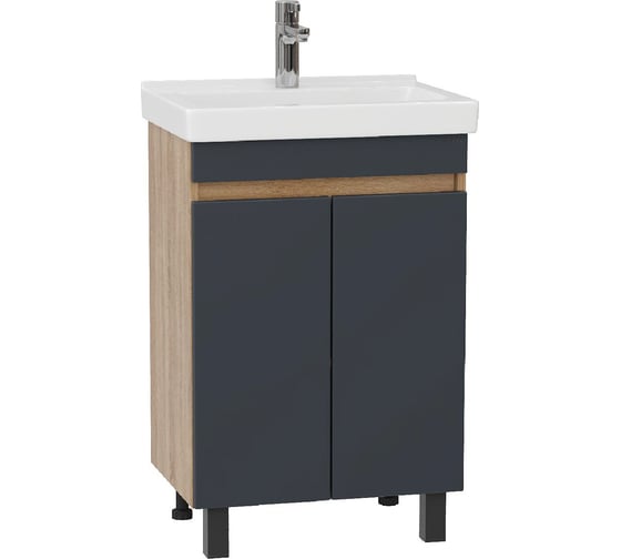 Тумба с раковиной Onika Милтон Квадро 55 напольная, серая/дуб сонома (ум.Визит 55) 105563