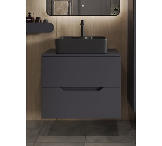 Тумба с раковиной подвесная 70 см графит/черный ORANGE Line Li-70TugMDF+B01-475MB X554059999