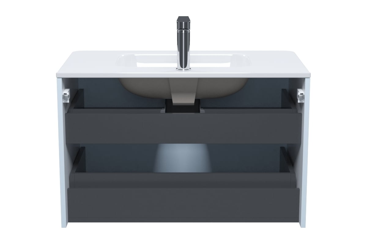 Подвесная тумба с плоским умывальником Edifice в нежно-голубом оттенке – воплощение современного минимализма. Мягкие линии корпуса в сочетании с удобными интегрированными ручками выглядят свежо и актуально. Смотрится аккуратно, легко и не усложняет процесс уборки в ванной благодаря подвесной конструкции.