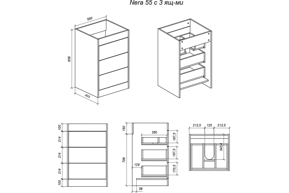 Технические характеристики Veneciana Nera 55 с 3-мя ящиками индиго