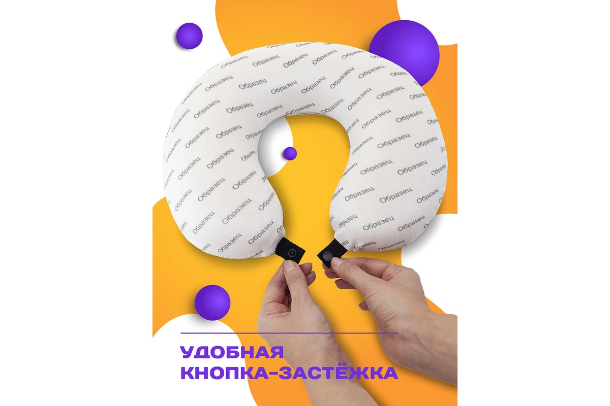 Подушка оснащена кнопкой для крепления, которая позволяет облегчить транспортировку, пристегнув ее к сумке или чемодану.