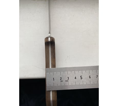 Сделано, видимо, по стандарту. Как для меня, лично, не хватает одного, двух сантимметров длинны рукояти. Коротковата рукоять. Железо рукояти во время нарезки чего либо у меня упирается в край ладони. Не очень комфортно работать ножом(лично мне) Думаю, людям, с широкой ладонью, вообще будет не удобно.