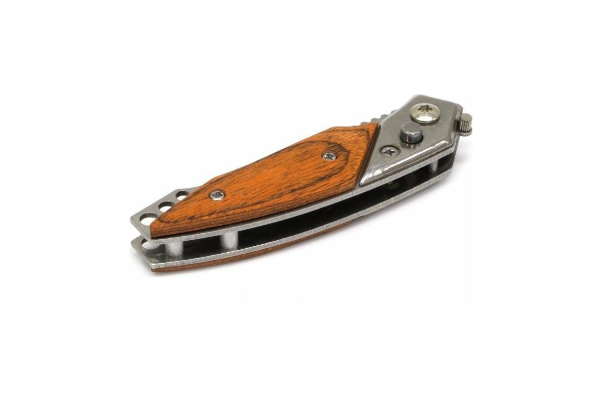 Лезвие складного ножа выкидывается нажатием на кнопку.