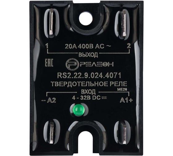 Твердотельное реле Релеон вход 24в Dc; выход 1но 20а, 48-440в Ac; переключение через 0, разъем, RS22290244071