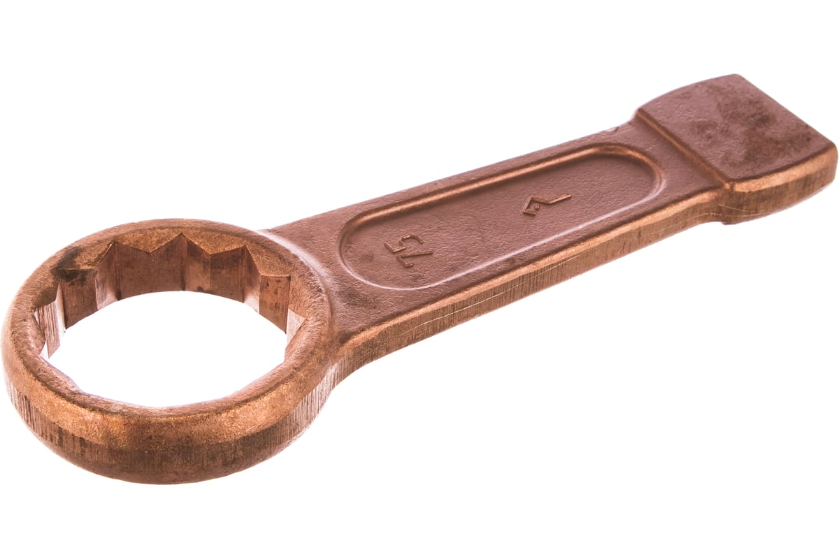 Ударный кольцевой ключ ТУ ст.40Х омедненный КЗСМИ КГКУ-75 51825257 - удобный и качественный инструмент, при помощи которого можно эффективно работать с многогранным крепежом. Преимущество изделия заключается в медном искробезопасном покрытии.