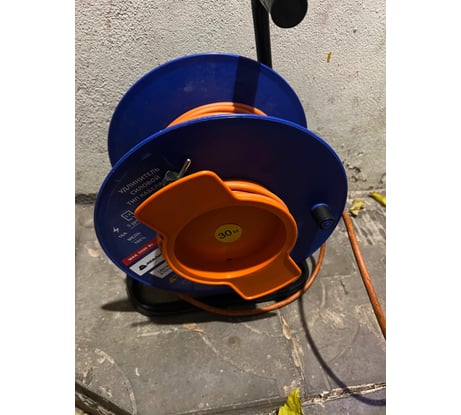 - Удобная ручка для смотки катушки позволяет быстро наматывать или разматывать кабель;