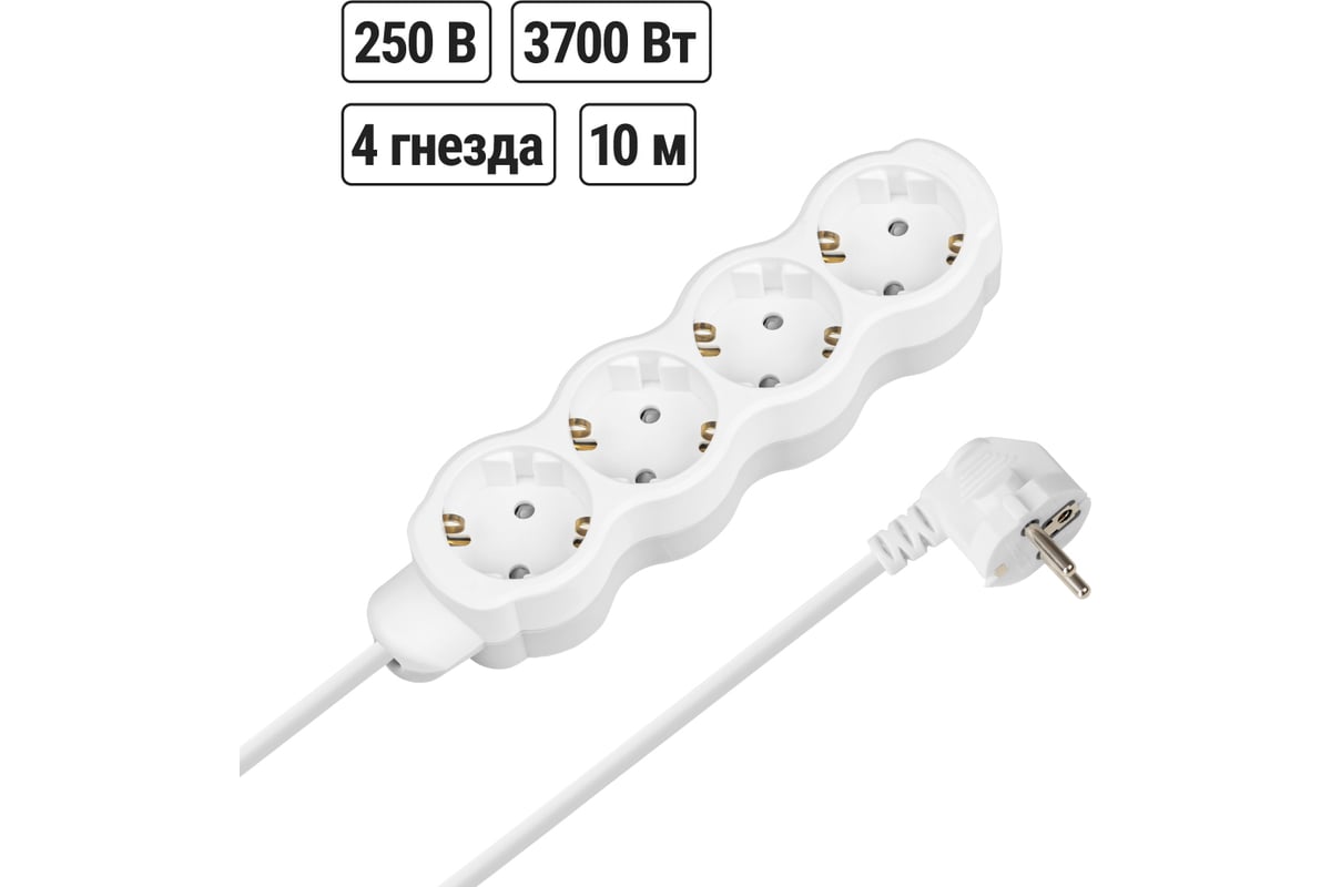 Удлинитель бытовой TDM ELECTRIC Люкс 4 гнезда, 10 м, с заземлением, с защитными шторками, ПВС 3х1,5 мм2, 16 А, 250 В, 3700 Вт SQ1303-4062
