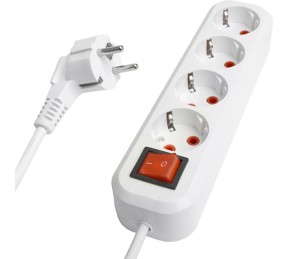 Четырехместный удлинитель STEKKER hm07-41-02 с заземлением, с выключателем, 3x1мм2, 2м, серия home (у16а-003), белый, 49358