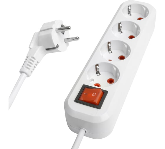 Четырехместный удлинитель STEKKER hm07-41-03 с заземлением, с выключателем, 3x1мм2, 3м, серия home (у16а-003), белый 49359