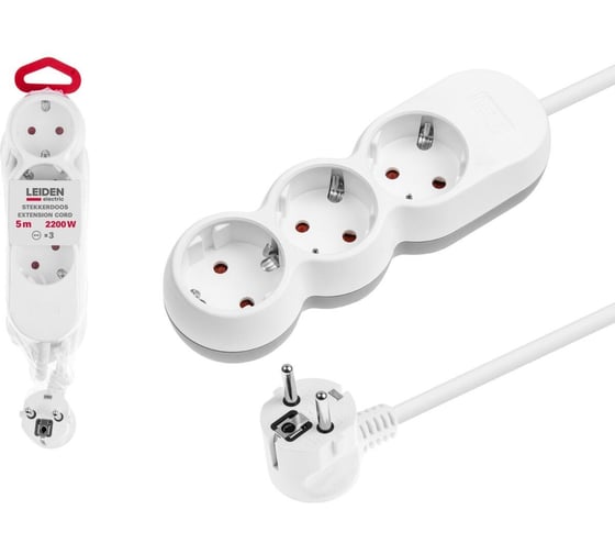 Удлинитель электрический LEIDEN ELECTRIC 5 м 3 розетки 2,2 кВт с заземлением 805024 ЦЗ-0134568600
