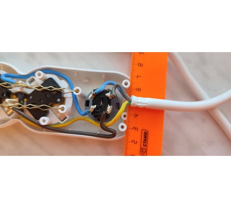 Ну 5 я за это не поставлю! Хотя удлинитель отличный. Кнопка фуфел, её бы заменить на реально мощную, ведь токи то идут ⚡ не шуточные, и провод толстый подразумевает большую мощность и ампераж.