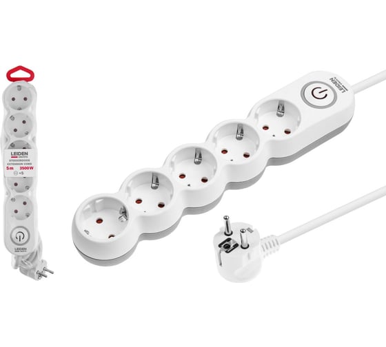 Удлинитель LEIDEN ELECTRIC 5 м 5 розеток 3, 5 кВт с заземлением и выключателем 805040 ЦЗ-0635390406