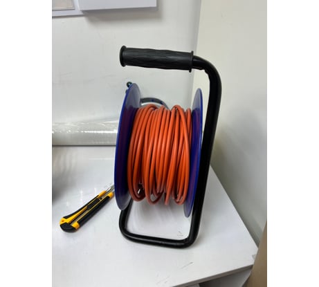Приобрел вот такой удлиннитель на катушке от бренда Атлант. отличный удлинитель. Провод имеет яркий оранжевый цвет. Мне это нравится.так как его хорошо видно на земле. Использую чтобы подзаряжать аккумулятор на машине. Для работы компрессором, когда надо на улице работать. Аккуратно разматываю и сматывю. Впечатления приятные. Немного хлюпенькая нога. Купить можно, цена соответствует качеству.
