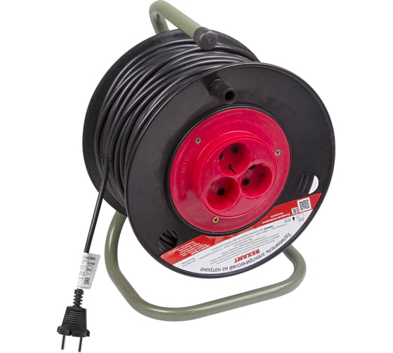 Расходные материалы для удлинителя REXANT на катушке 50 м 3 розетка 2х1,0 11-7250