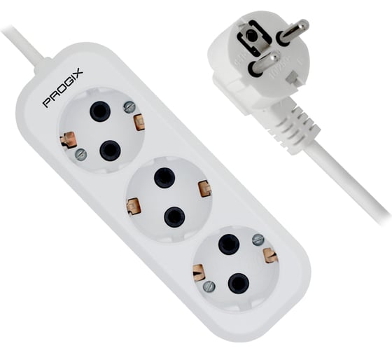 Удлинитель сетевой PROGIX 3 розетки, 10 метров с/з, белый, 3x1,5 US3GX1W10
