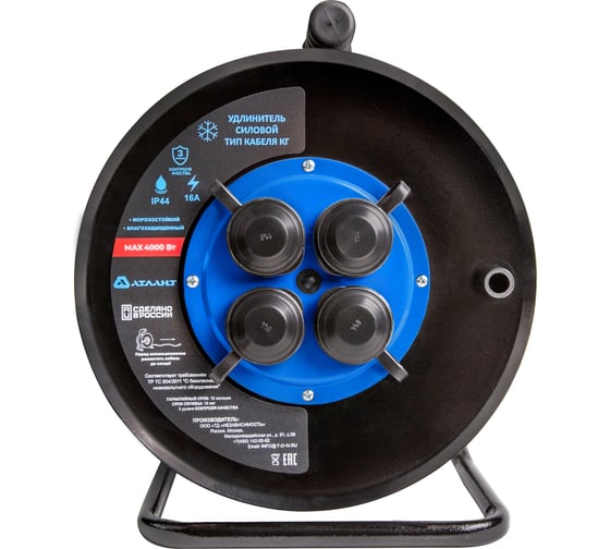 Удлинитель силовой Атлант КГ 3500 Вт 50м на металлической катушке IP 44 без заземления 80067