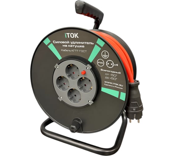 Удлинитель силовой iTOK на пластиковой катушке серии iCONNECT COLOR предназначен для подключения различных электрических приборов, механизмов, промышленного электрооборудования, станков и устройств. Технические параметры: напряжение сети 230 В, номинальная сила тока 16А, количество полюсов 1P+N+E, мощность до 3500 Вт Морозостойкий оранжевый кабель КГТТ 3х2,5 мм ГОСТ 24334-2020. Температура эксплуатации от -50 до +50 С. Область преминение: дом, дача, строительные площадки, на производстве различных промышленных предприятий, автосервисах, объектах социальной и транспортной инфраструктуры, . Степень защиты iP20. Морозостойкий кабель позволяет использовать Силовой удлинитель на катушке iTOK на улице при высоких минусовых температурах. Удлинитель производится с применением передовых технологий производства электротехнической продукции самых высоких стандартов качества в строгом соответствии с ГОСТ 30988.1-2020. Катушка изготовлена из ударопрочного пластика, стойка стальная, выполнена из прочной трубчатой стали, окрашенная с помощью порошковой технологии, что обеспечивает высокую износостойкость и долговечность изделия В блок розеток встроена защита от перегрузки с помощью автоматического предохранителя: при превышении допустимой мощности система защиты от перегрузки отключает розетки. Возобновить работу можно путём нажатия красной кнопки Перед началом эксплуатации, во избежании перегрева кабеля, промышленный удлинитель необходимо полностью размотать