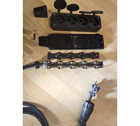 Вилка (стандарт Shuko) и Колодка с защитными крышками выполнены из каучука, что обеспечивает ударопрочность и возможность применения при минусовых температурах.
