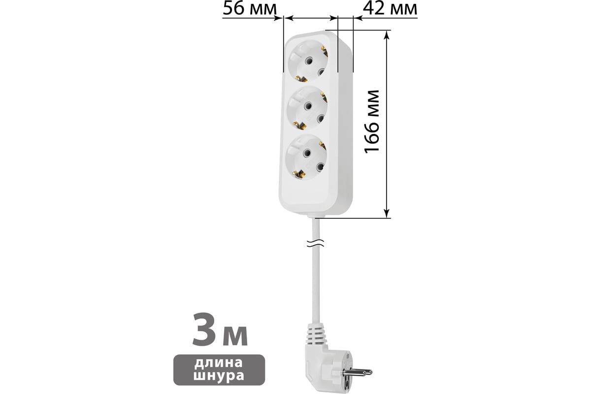 Удлинитель сетевой TDM ELECTRIC 3 розетки, 3 метра, с заземлением, 16 А, 3680 Вт, белый, SQ1303-1401