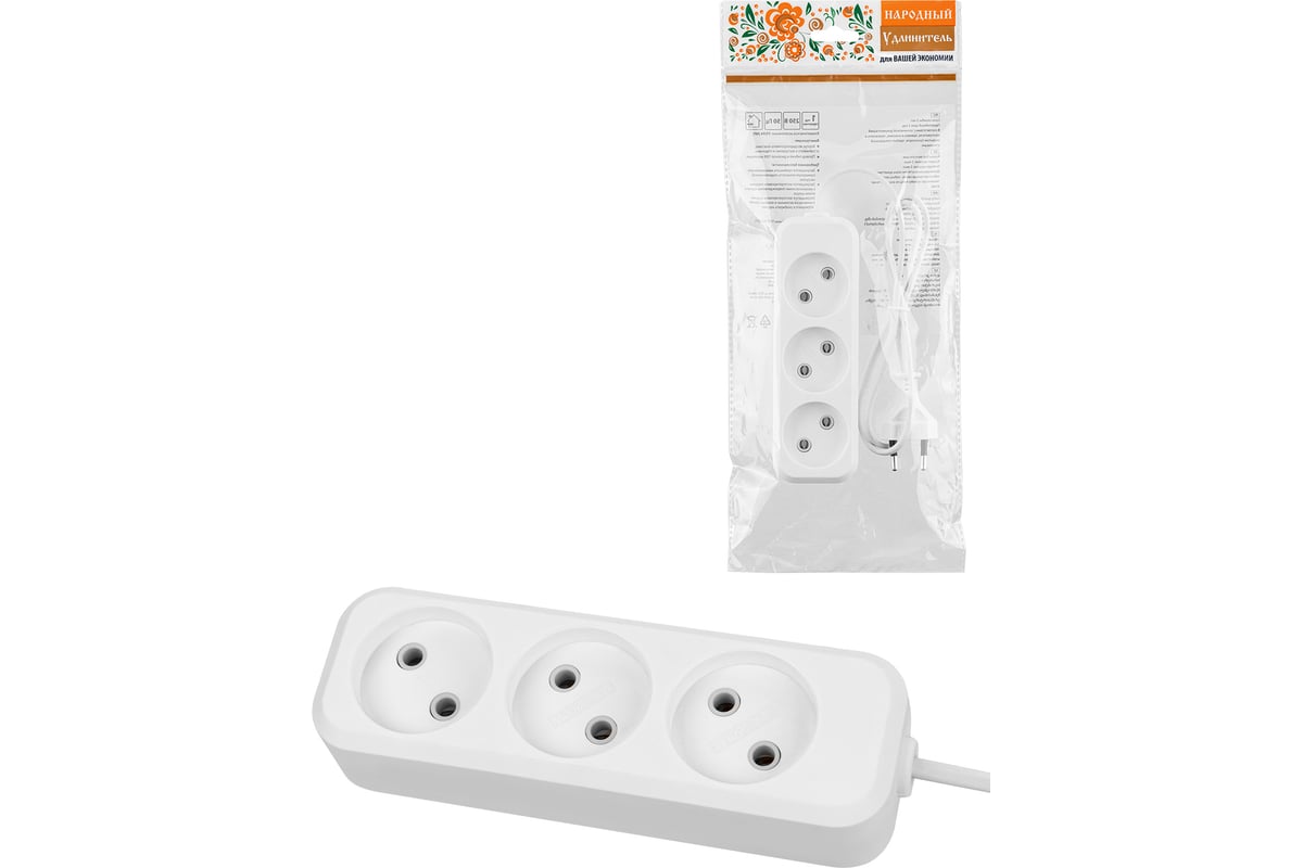 Расходные материалы для удлинителя TDM ELECTRIC Народный УН3 3 гнезда, 3метра, без заземления, ШВВП 2х0,75 мм2, 6А/250В SQ1303-1201