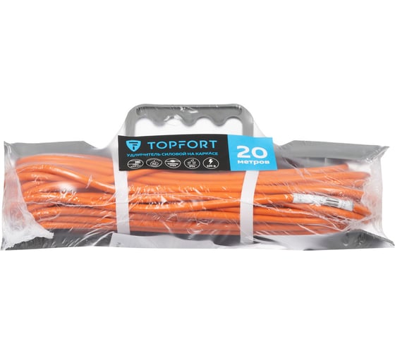 Удлинитель Topfort ПВС 3х2,5кв.мм, 20м, на рамке, 1 гнездо, с заземлением, с заглушками, IP44 2267265
