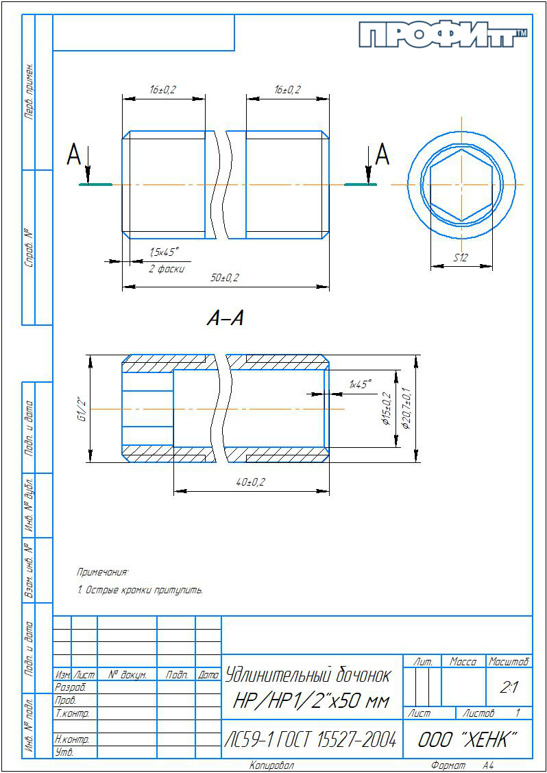Удлинительный бочонок Профитт НР/НР 1/2" х 50 мм - 10 шт. 9278168 - латунный фитинг в виде втулки с наружной резьбой 1/2 дюйма на концах. Просвет выполнен в форме шестигранника. Служит для наращивания участка магистрали водопровода.