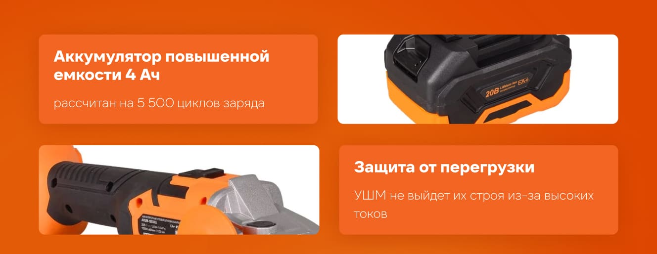 Компактность и малый вес: Инструмент удобно держать в руке, что снижает утомляемость и позволяет работать в труднодоступных местах. Долгое время работы от аккумулятора: Можно выполнить большой объем работы без необходимости частой подзарядки.