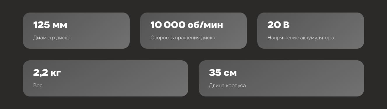 Прекрасный аппарат для небольших дел! Весит немного, в руке сидит как влитая, вибрация почти не чувствуется. Понравилось, что есть регулировка оборотов, можно подстроиться под разные материалы. Отлично справляется с зачисткой металла и резкой тонких листов. Аккумулятора, который идет в комплекте, хватает на продолжительное время работы. Однозначно советую, кто ищет легкую и функциональную болгарку.