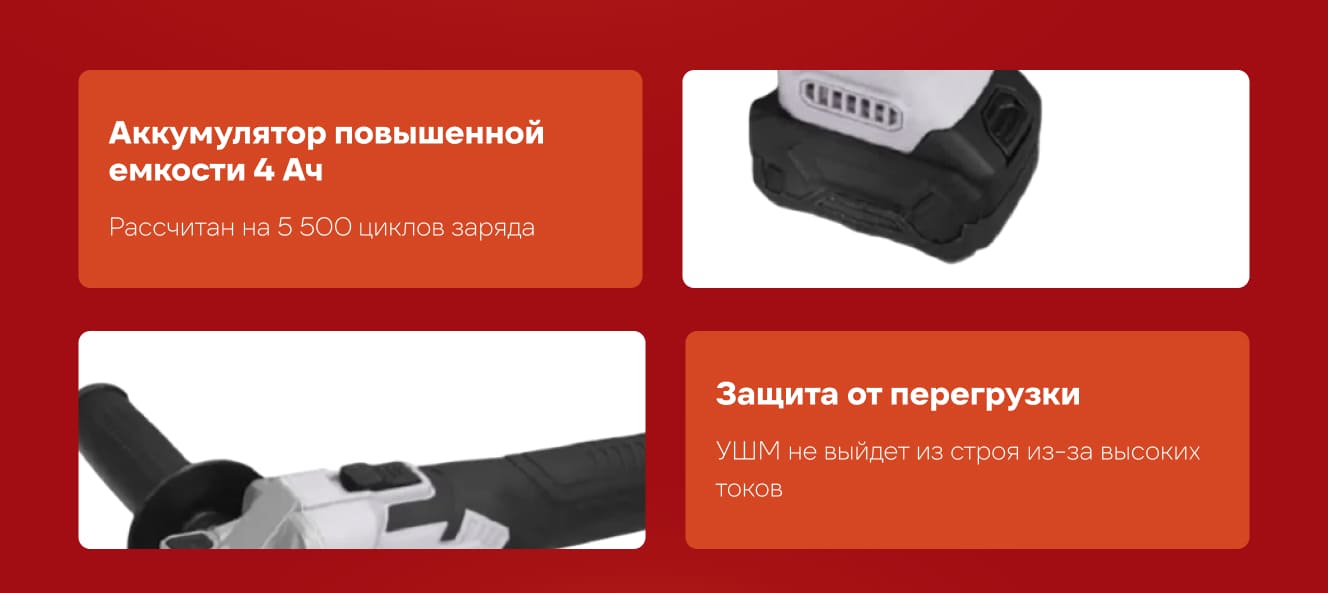Легкий вес и маневренность: Удобство работы в стесненных условиях. Долгое время работы от аккумулятора: Возможность выполнения больших объемов работ.