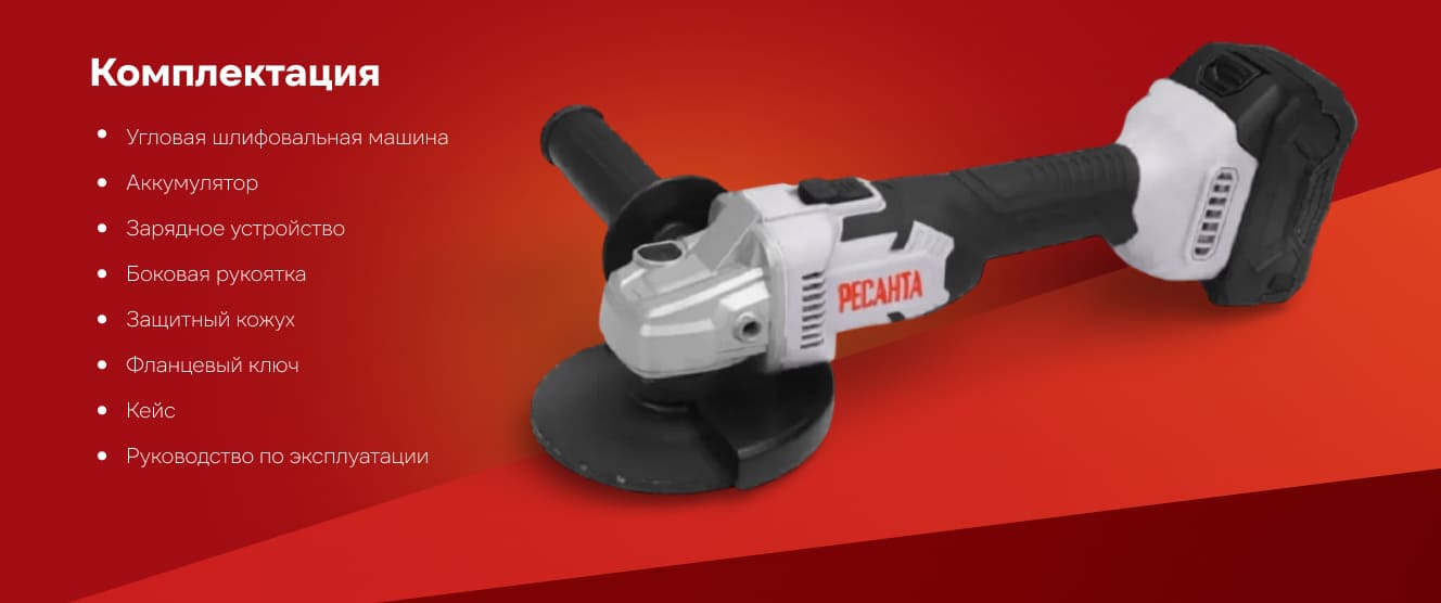 Углошлифовальная машина аккумуляторная Ресанта АУШМ-125/20Li (в комплекте 1 АКБ и ЗУ) в кейсе 75/12/13