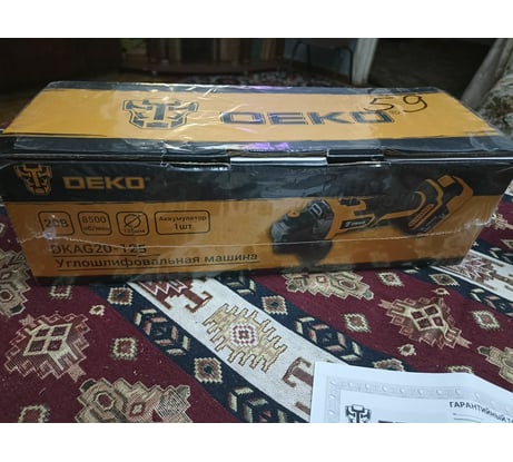 Поработал данной болгаркой и сложилось свое мнение о ней. Брал ее за 2135р без аккумуляторов и зарядного устройства (много инструментов этой фирмы). Цену обозначаю - это важно!, и сейчас объясню почему. Данная болгарка подходит только как вспомогательный инструмент, например, купили вы на стройрынке арматуру и надо запихнуть в машину. Для этого и нужна эта болгарка - напилить арматуру и погрузить в машину. Или что-то подрезать без доступа к розетке 220В. Цепь перепилить, прикипевшую гайку/болт срезать, дужку замка перепилить, и тд. Как компромиссный вариант можно докупить к этой болгарке фирменные мощные аккумуляторы для увеличения продолжительности работы. Но не рассчитывайте, что вы тогда сможете швеллера пилить, или бордюрную плитку, или штробы нарезать в квартире-трешке. Вот за эту смешную цену болгарка и покупалась в инструменты - чтобы была что-то отпилить, когда розетки близко нет. Перейдем к технической части. Болгарка достаточно мощная, я был приятно удивлен (начитавшись отзывов). Родные ДЕКОвские аккумуляторы высаживает мгновенно. Кто там пишет 20мин работы - ерунда. Может это, если просто включить и смотреть на болгарку. При норм такой нагрузке 5-7 мин. Поэтому отрезные диски стоит брать самые тонкие, и лучше 115мм - чтобы минимизировать потери. Уровень шума - сопоставим с обычной сетевой болгаркой. Кто-то там писал, что после сборки органы управления шиворот-навыворот - я собрал и сравнил со своей сетевой болгаркой и все так же. Брызго- пылезащищенность производителем не заявлялась и ее нет. Поэтому работать под дождем не получится. Резюмируя все описанное: если вам нужен мощный инструмент, способный работать достаточно продолжительное время - это вам в другой ценовой сегмент. Если вам нужна весьма недорогая болгарка для разовых случайных работ, и у вас уже есть такие аккумуляторы и зарядное устройство, - это она и есть. За большую цену я бы не купил.
