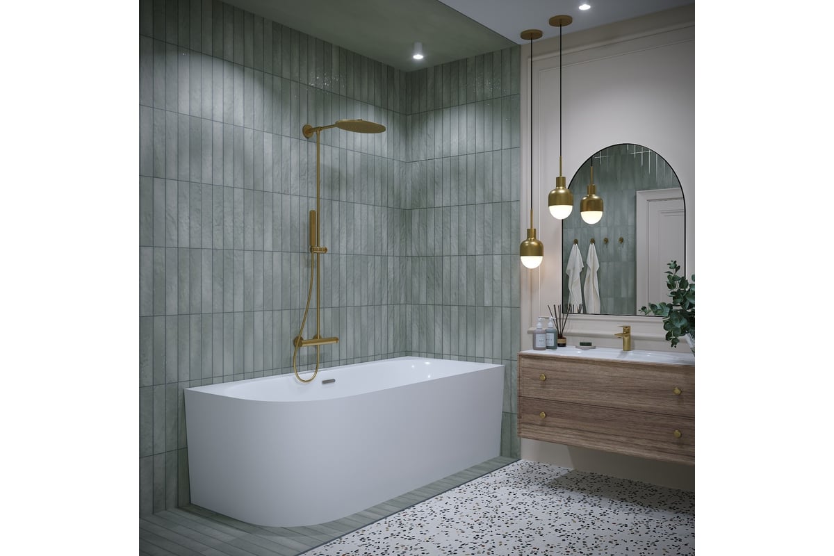 Пристенная ванна из литьевого акрила станет не только стильным акцентом, но и функциональным решением в ванных комнатах с ограниченным пространством. Имитация отдельностоящей ванны достигается за счет аналогичной несъемной панели, при этом чаша прилегает вплотную к стене. Такой монтаж удобен для купания и принятия душа, предотвращает попадание брызг, пены и мелких предметов за пределы «мокрой» зоны. Фирменная технология обработки акрилового листа гарантирует повышенную стойкость к истиранию, усиливает антимикробные свойства поверхности и облегчает процесс ухода за ванной.
