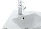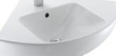 Раковина имеет угловую форму, что позволяет сэкономить пространство в помещении при ее установке.