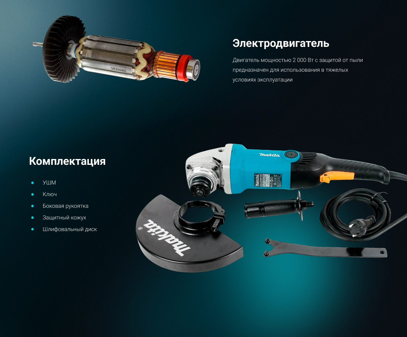 Угловая шлифмашина Makita GA 9010 C - небольшая и удобная, справится с резкой металлов, шлифовкой, зачисткой. Редуктор защен от пыли - инструмент дольше проработает без поломок. Постоянная скорость вращения поддерживается электроникой. Редуктор поворачивается.