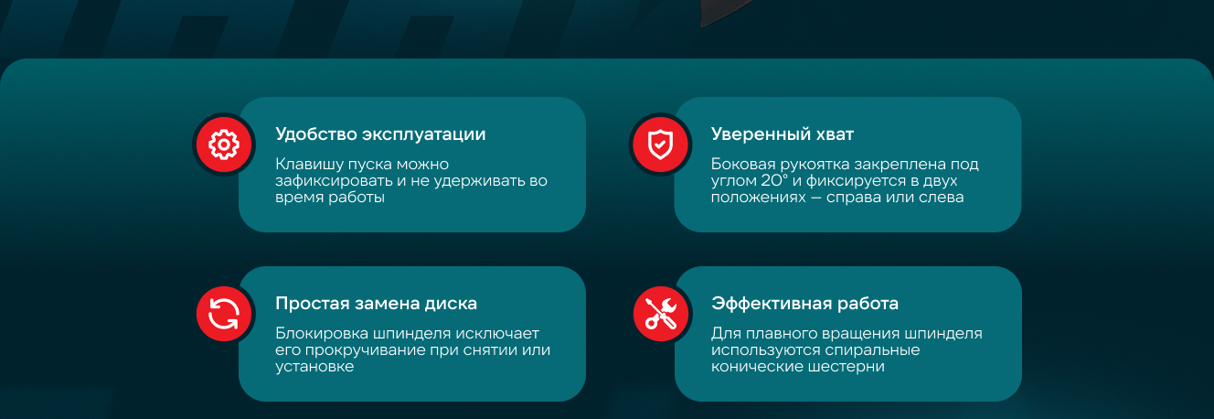 - Боковая рукоятка расположена под углом 20° для дополнительного комфорта