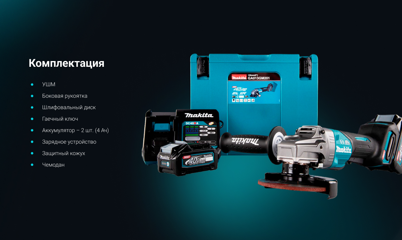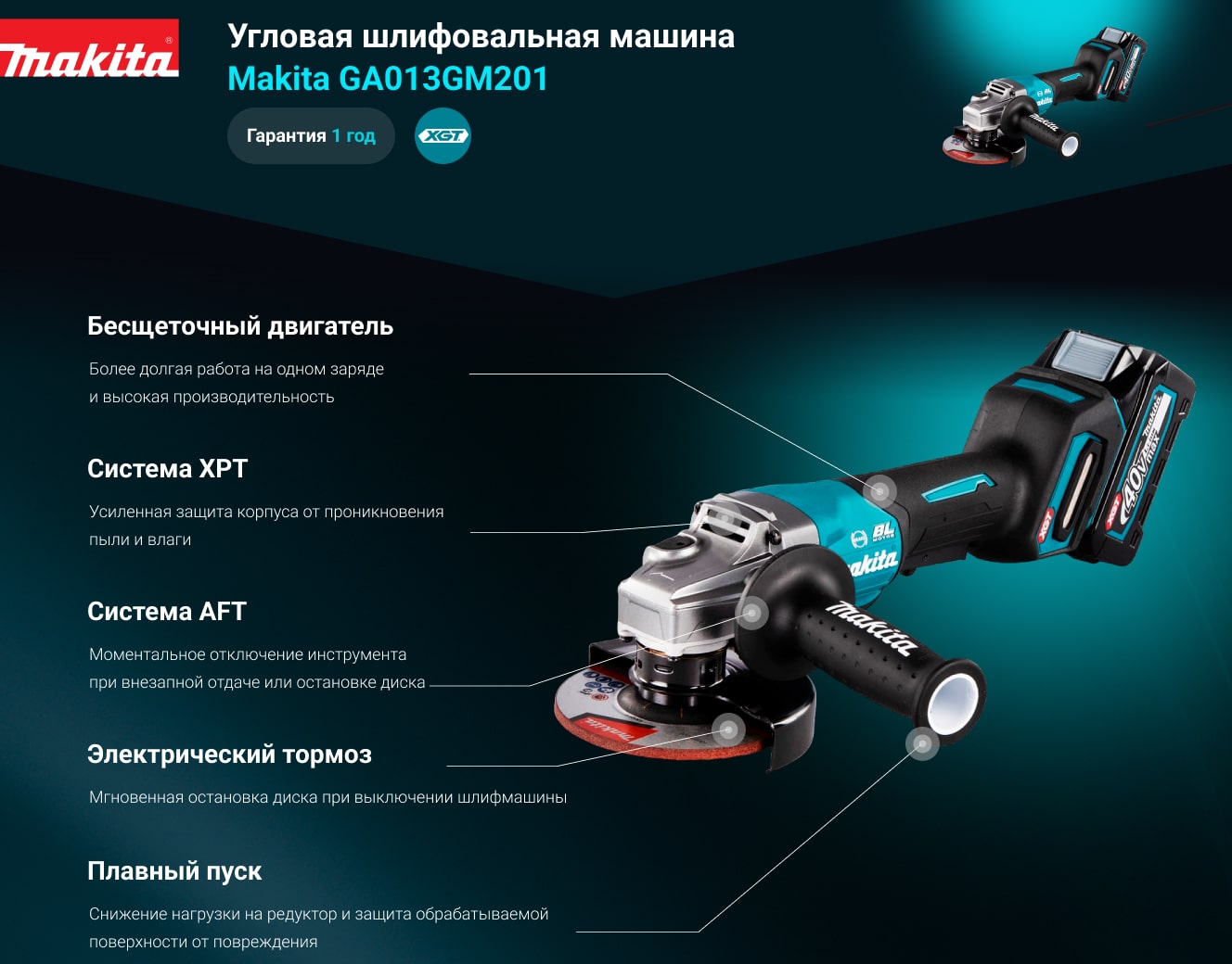 Угловая шлифовальная машина Makita XGT GA013GM201 199372 предназначена для шлифовки, зачистки и резки материалов из металла и камня без использования воды.